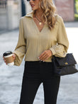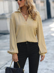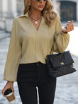 Textured Johnny Collar Drop Shoulder Blouse