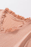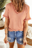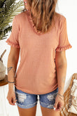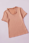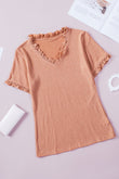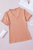 Textured V-Neck Flounce Sleeve Blouse