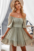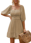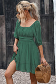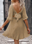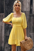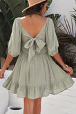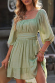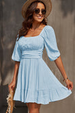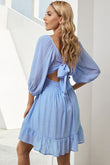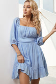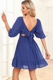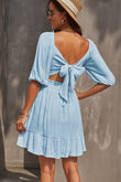 Tie-Back Ruffled Hem Square Neck Mini Dress