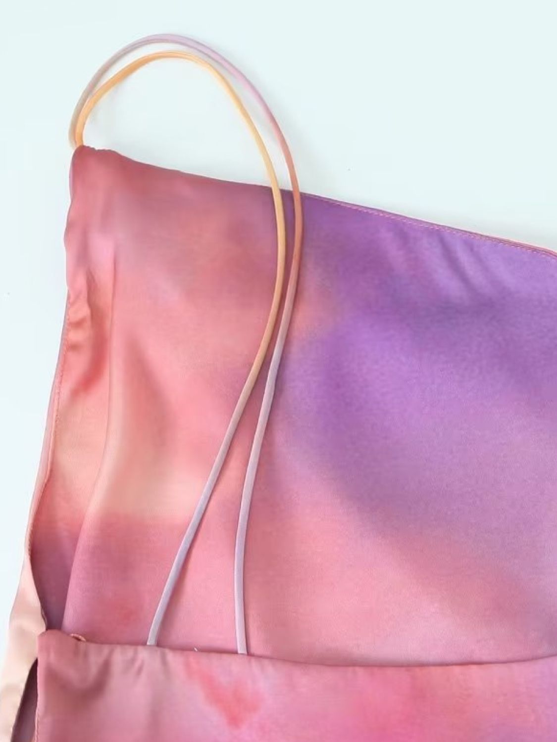 Tie-Dye Asymmetrical Neck Ruched Cami