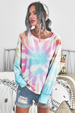 Tie-Dye Boat Neck Batwing Sleeve Tee
