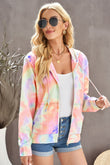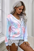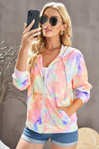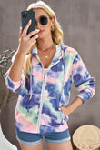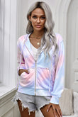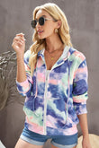 Tie-Dye Drawstring Detail Zip Up Hooded Jacket