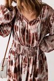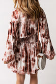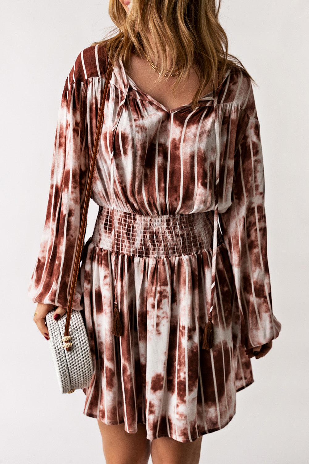 Tie-Dye Smocked Waist Balloon Sleeve Dress
