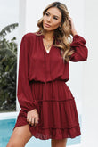 Tied Frill Trim Puff Sleeve Mini Dress