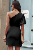 Tied One-Shoulder Puff Sleeve Dress