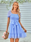Tied Ruffle Hem Smocked Reversible Dress