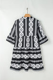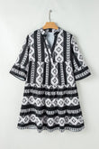 Tiered Printed Notched Half Sleeve Dress