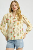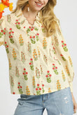 Umgee Floral Print Lantern Sleeve Button Down Shirt