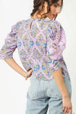This exquisite statement blouse features a romantic vintage-inspired floral damask print in soft lavender and pastel hues. Crafted from lightweight, breathable fabric, it showcases dramatic puff sleeves with elastic cuffs and an eye-catching oversized bow detail on the shoulder. The cropped length and relaxed fit make it perfect for pairing with high-waisted jeans or skirts, while the feminine round neckline and structured design elements create a sophisticated silhouette ideal for both casual outings and special occasions.