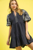Umgee Tiered Embroidered Puff Sleeve Mini Dress