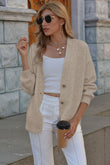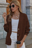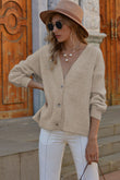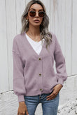 V-Neck Button-Down Dropped Shoulder Cardigan