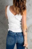 This knitted top is a great go-to for wearing on its own or layering under a jacket. You'll stay comfortable all day with its ribbed trim and V-neck.