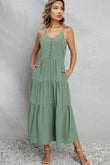 V-Neck Sleeveless Spaghetti Straps Midi Dress
