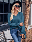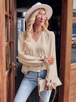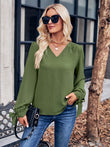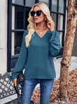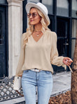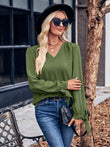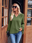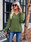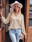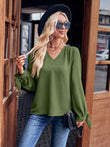 V-Neck Tie Cuff Puff Sleeve Blouse