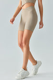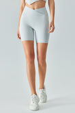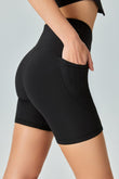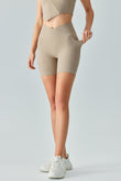 V-Waist Ribbed Sports Biker Shorts with Pockets