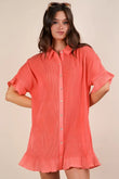 The Pleated Detail Button Down Mini Dress is a stylish and versatile piece for any occasion. Its pleated detailing adds a touch of sophistication, while the button-down design provides a classic look. This dress is perfect for both casual outings and more formal events. The mini length adds a playful vibe, making it easy to dress up or down. With its comfortable fit and flattering silhouette, this dress is sure to become a wardrobe favorite. Add some accessories and you're ready to turn heads wherever you go!