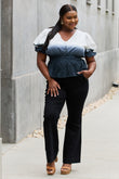 White Birch Full Size Smocked Waist Ombre Woven Top
