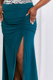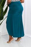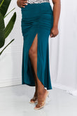 White Birch Full Size Up and Up Ruched Slit Maxi Skirt in Teal