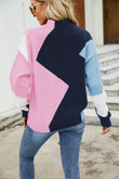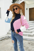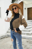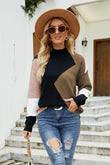 Woven Right Color Block Mock Neck Ribbed Trim Sweater