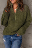 Woven Right Half Zip Rib-Knit Dropped Shoulder Sweater