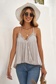 - Feature: Spaghetti straps, lace trimmed, airy tank