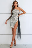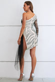 Zebra Print Rhinestone Slit Single Shoulder Dress