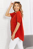 Zenana Full Size Summer Breeze Gauze Short Sleeve Shirt in Copper