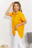 Zenana Full Size Summer Breeze Gauze Short Sleeve Shirt in Mustard