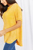 Zenana Start Small Washed Waffle Knit Top in Yellow Gold