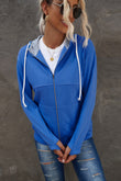 Zip Up Thumbhole Sleeve Hooded Jacket with Pockets