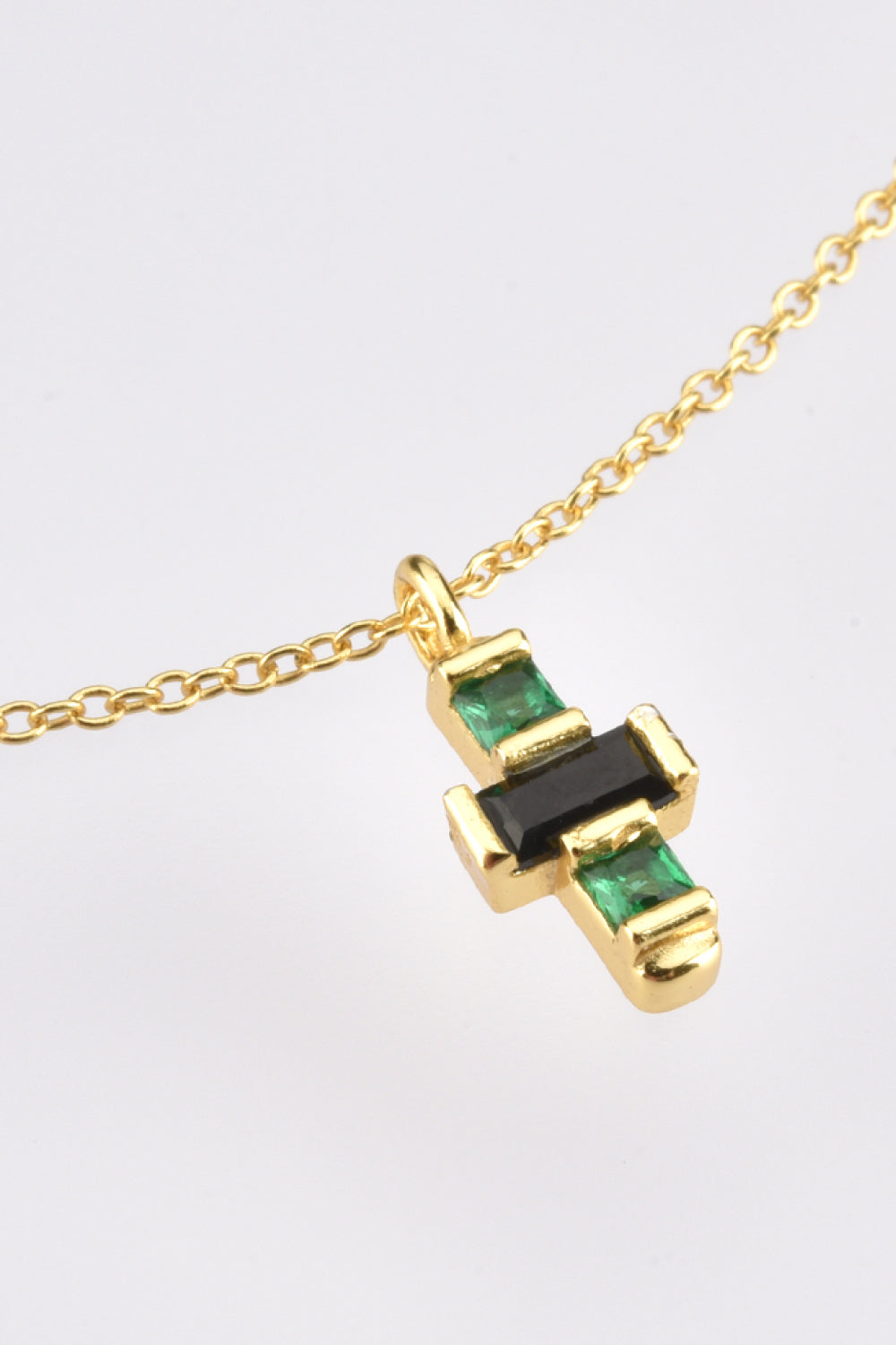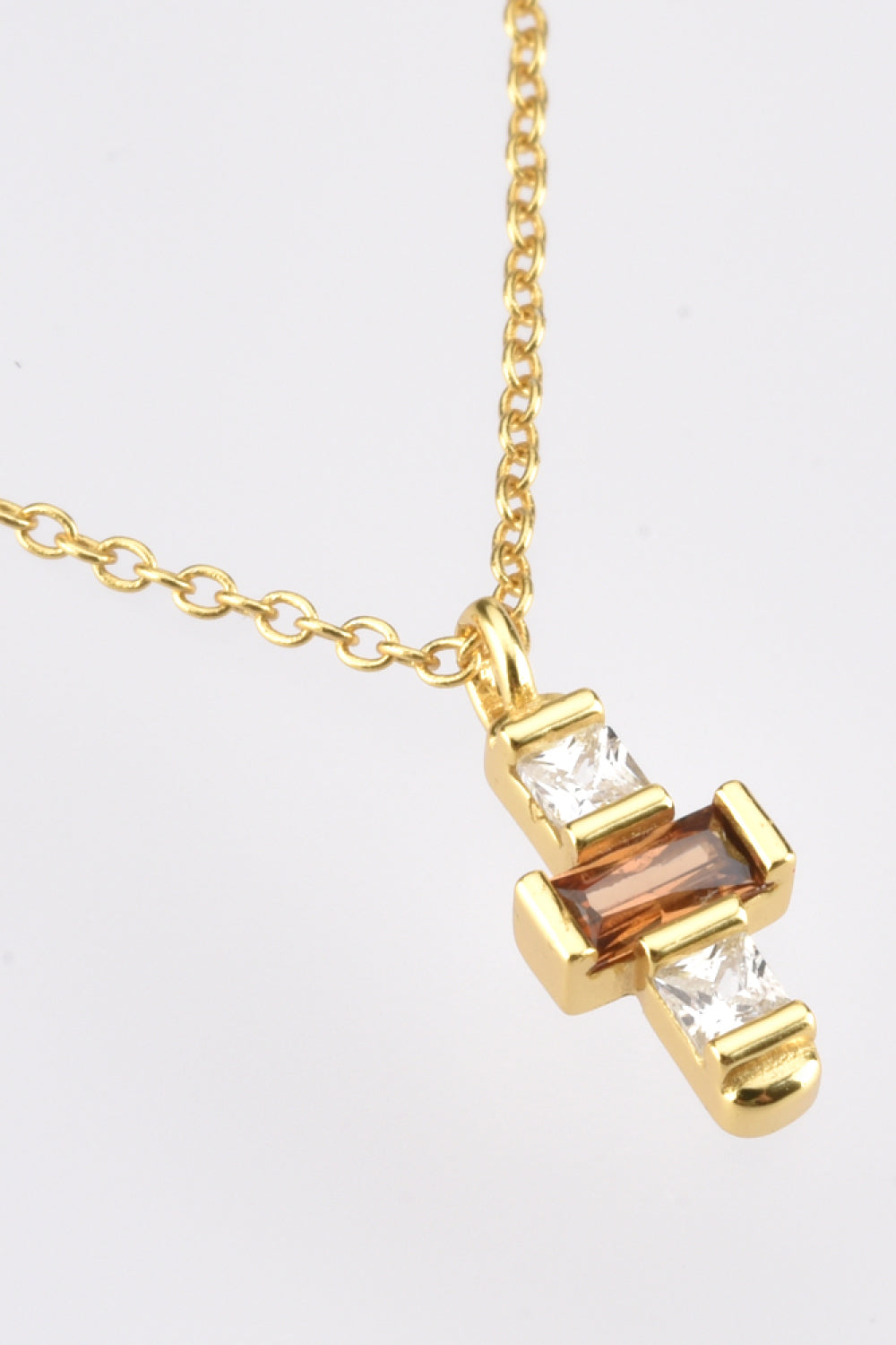 Zircon Cross Pendant 925 Sterling Silver Necklace